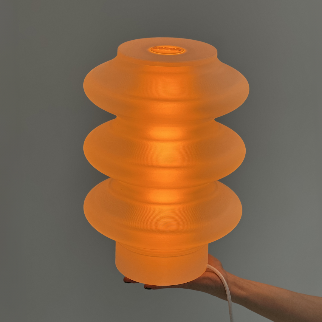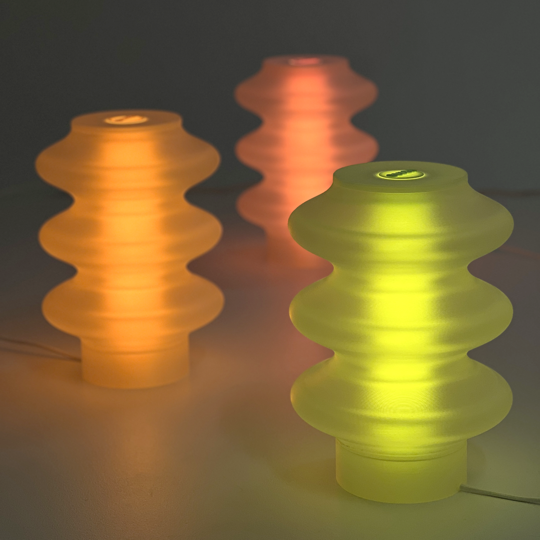 Lampa wykonana w technologii druku 3D z biodegradowalnego filamentu PLA. Zaprojektowana i wykonana w Polsce. Inspirowana stylem Memphis, w której geometrycznie wykreślone łuki kontrastują z delikatnie rozpraszanym światłem.